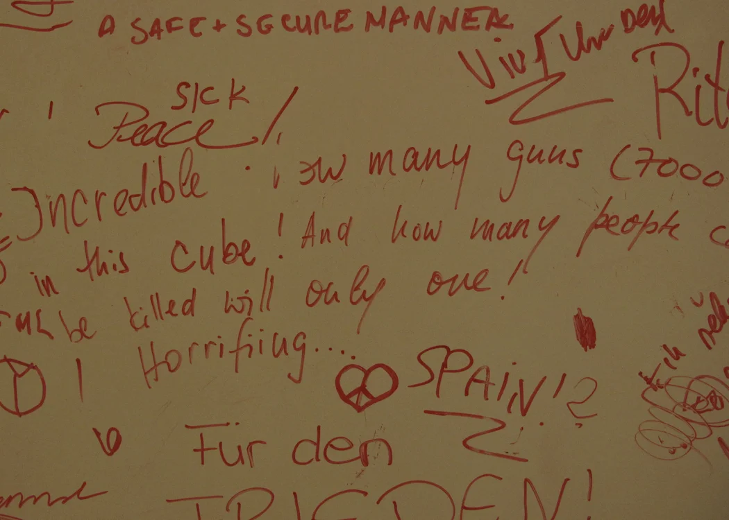 The Gun Sculpture installation was created by Canadian artists Sandra Bromley and Wallis Kendal. It was created with international support to creatively challenge cultures of violence.